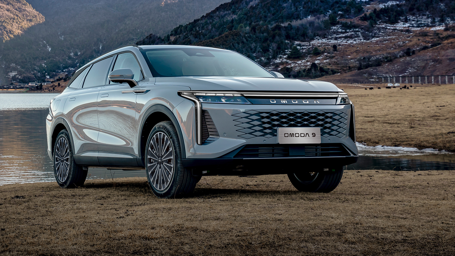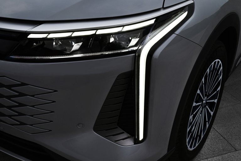 Design OMODA 9 Super Hybrid inspirowany jest minimalizmem i estetyką haute couture. Charakterystyczny świetlisty pas LED płynnie łączy się zreflektorami w kształcie litery „X”, a 20-calowe felgi dopełniają wyglądu premium.